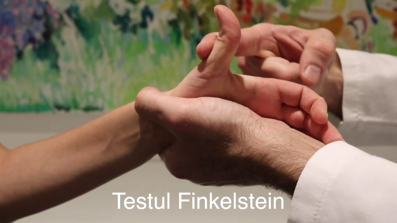 La palpare, durerea apare la nivelul conflictului, însă de multe ori iradiază pe traiectul mușchilor. Testul Finkelstein este util pentru a confirma diagnosticul. Abducția și extensia policelui contra unei forțe de opoziție este de asemenea foarte utilă în diagnosticare.
